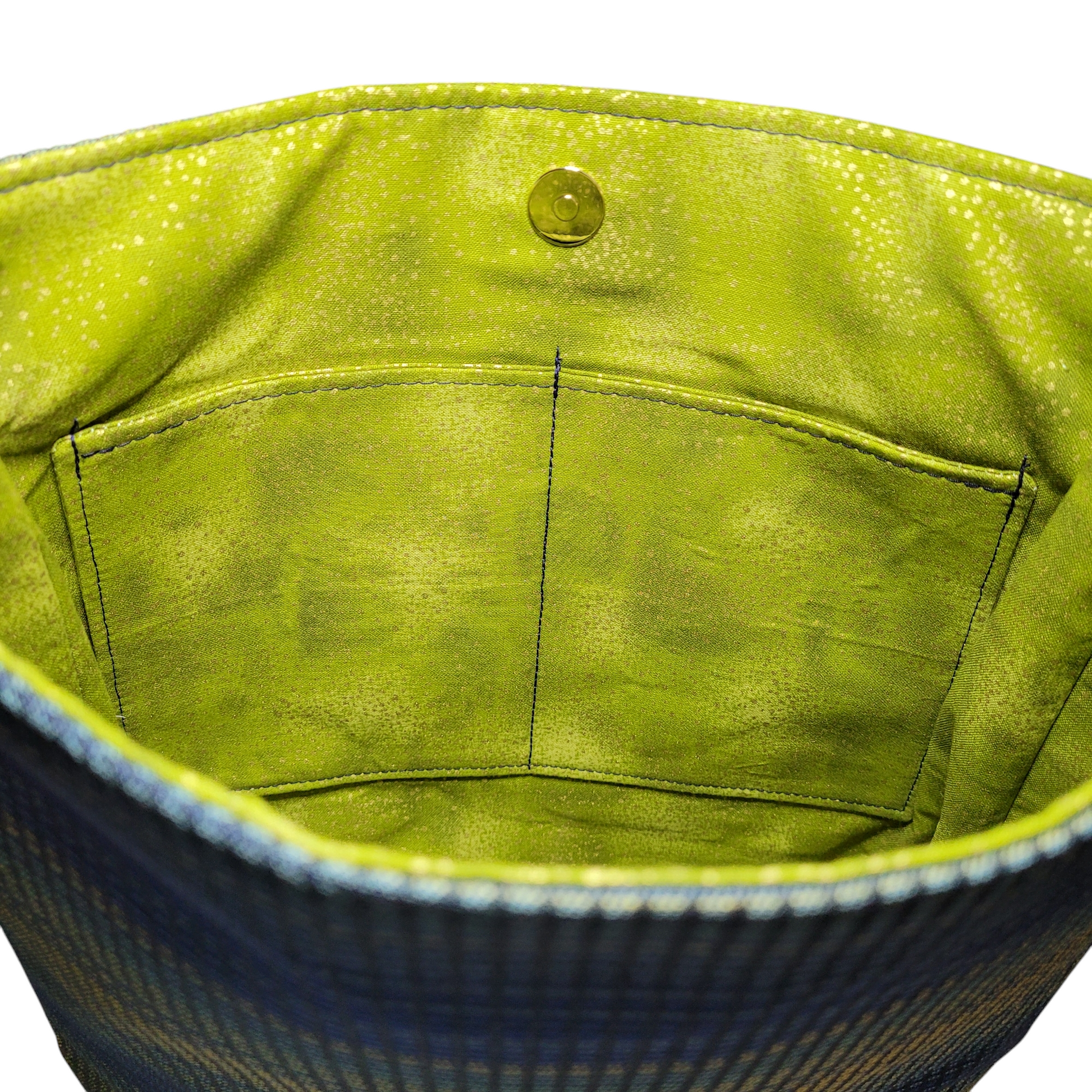 This large tote includes a crossbody strap and an exterior vertical zipper perfect for your keys and cell phone. The top closure is a magnetic snap. (Contact me if you would prefer a top zipper closure.) The interior has a zipper pocket and 2 slip pockets.