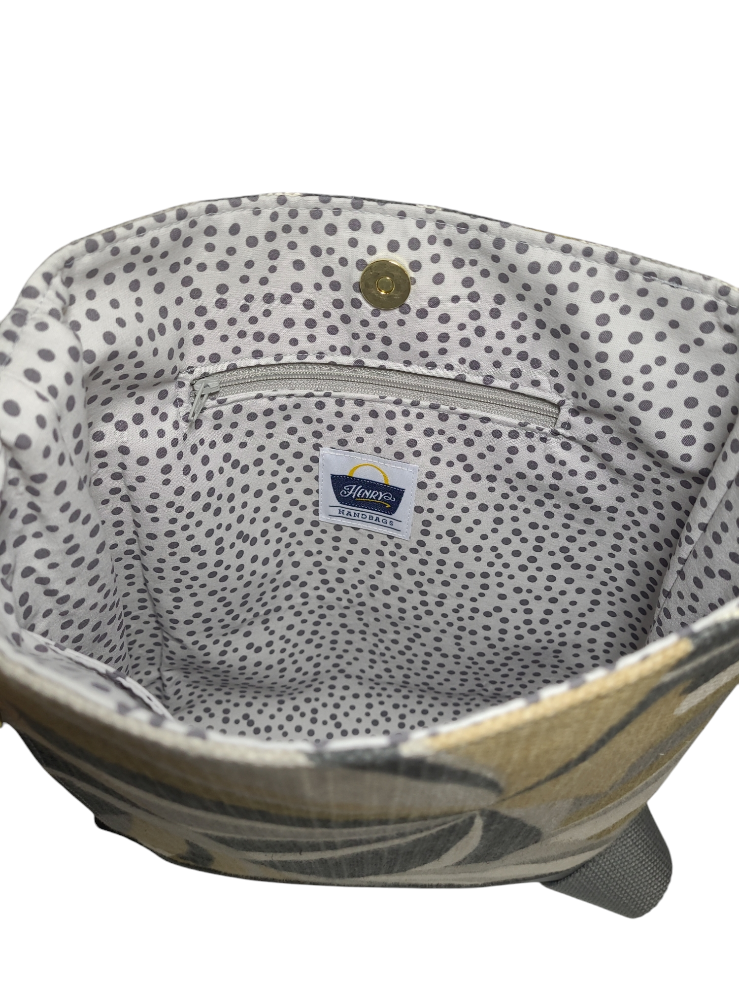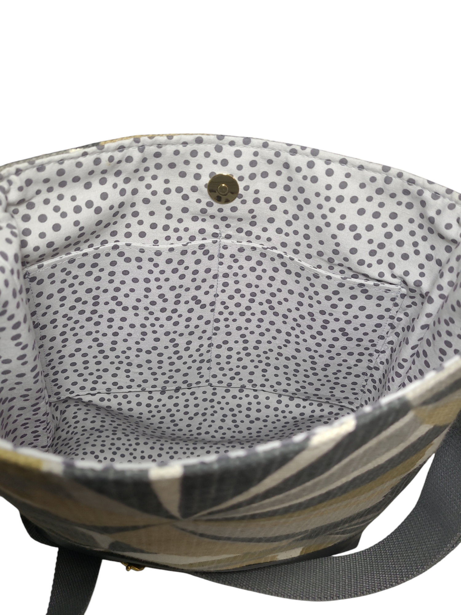 This large tote includes a crossbody strap and an exterior vertical zipper perfect for your keys and cell phone. The top closure is a magnetic snap. (Contact me if you would prefer a top zipper closure.) The interior has a zipper pocket and 2 slip pockets.